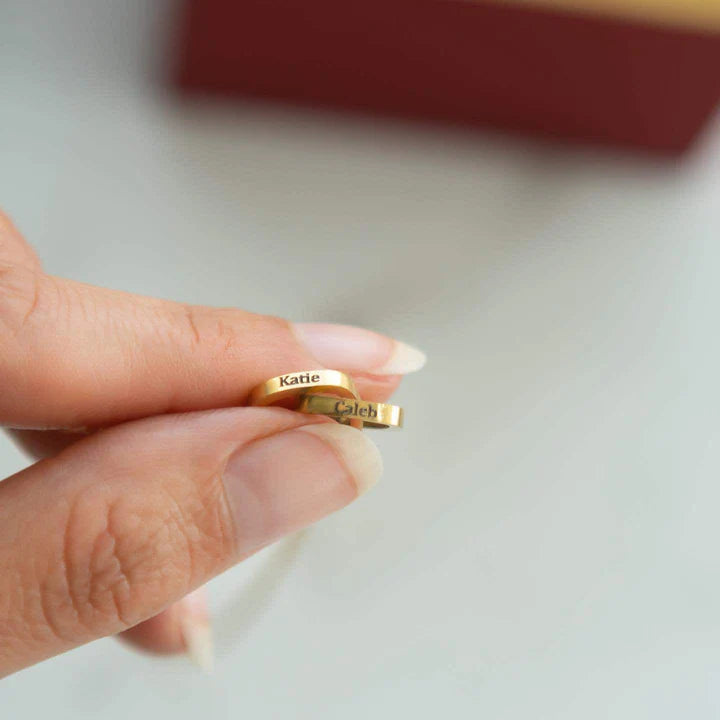 Gently rotate the box to reveal a hidden treasure—a custom necklace engraved with both your names, beautifully intertwined.