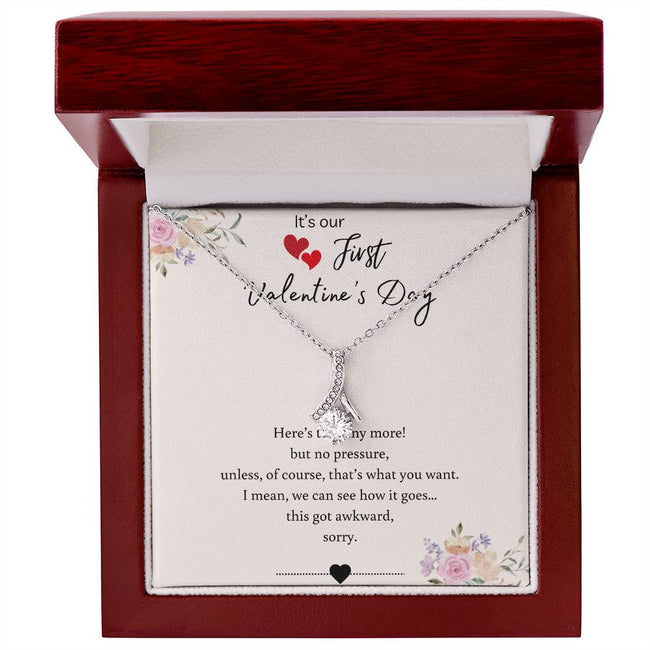 Imagine her reaction when she opens this stunning gift! The Alluring Beauty necklace features a petite ribbon shaped pendant that is sure to dazzle your special someone. Whether it's a birthday or anniversary, make sure to get her a gift she will love for years to come.