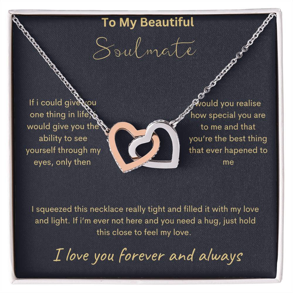 To My Beautiful Soulmate - Feel My Love - Interlocking Hearts Necklace - Love You Forever