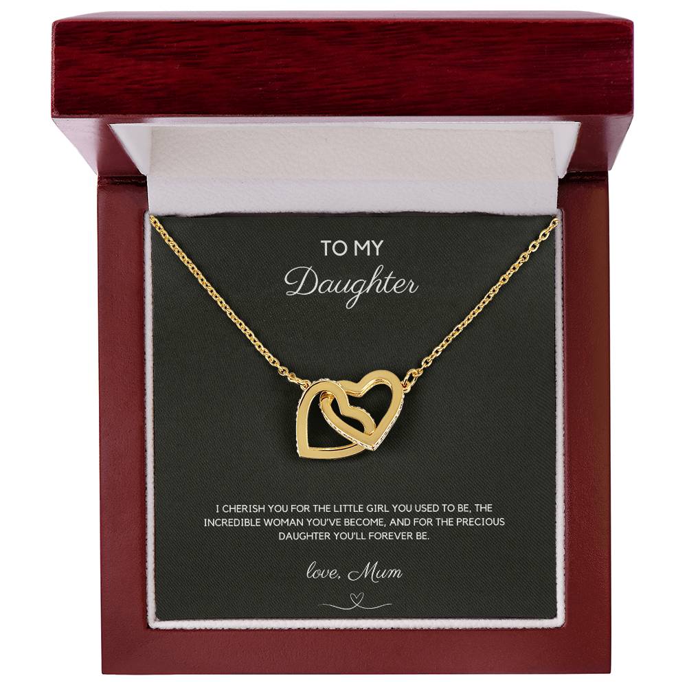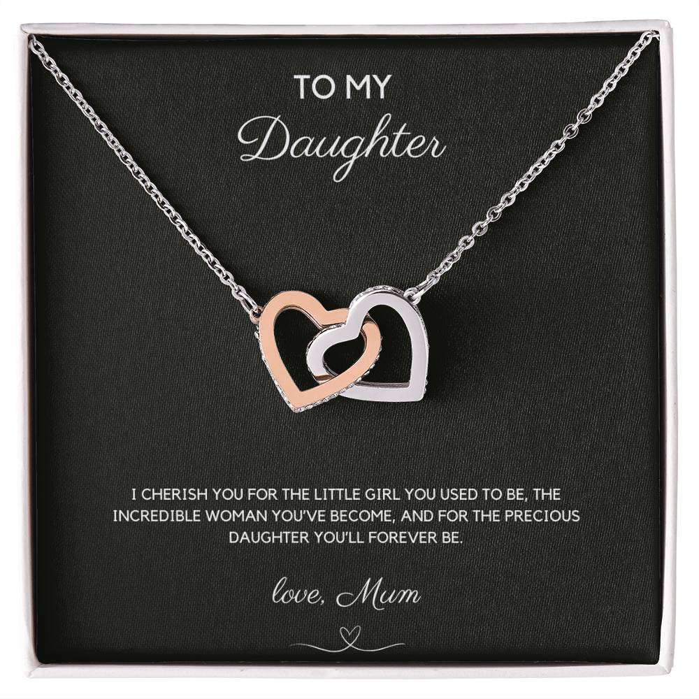 To My Daughter - I Cherish You - Interlocking Hearts Necklace - Love Mum