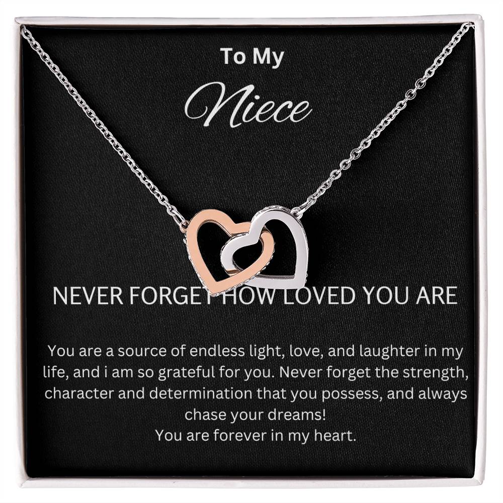 To My Niece - Chase Your Dreams - Interlocking Hearts Necklace
